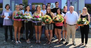 Nun absolvierten 22 weitere Auszubildende erfolgreich ihre Prüfung. Im Detail schafften Luana Baars, Michelle Braun, Sara Fißmer, Carmen Gonzales Caballero, Christina Hering, Sophie Hinrichs, Zaara Mekni, Michelle Doreen Rinne, Yvonne von der Ahe, Roneta Zinkeviciute, Lukas Krusberski und Lars Richel als Groß- und Außenhandelskauffrau/-mann, Matthäus Westfal als IT-Systemkaufmann, Fabian Buchholz, Dominik Grumbach, Mindaugas Lengnik, Daniel Peters, Kevin Schielke, Tim Solinger, Pascal Sühs, Fabian Tiemann und Christian Thies als IT-System-Elektroniker sowie Jonas Ellersiek als Mediengestalter den Abschluss ihrer Ausbildungszeit.